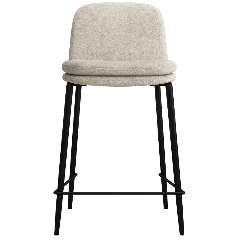 Besonders gefallen uns sein 16 mm starkes schwarzes Metallgestell mit konischen Füßen und die Nähte mit der doppelt gepolsterten Polsterung auf der Sitzfläche und Rückenlehne und mit einem hochwertigen Schlingenstoff in der Farbe Leinen mit Öko-Tex-Zertifizierung bezogen.