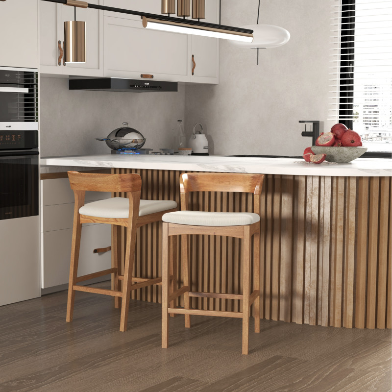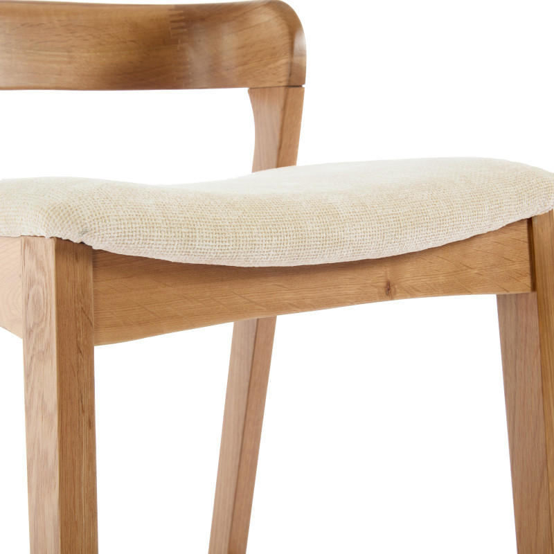 Gestell aus massiver europäischer FSC-Eiche, hochwertige Polsterung (Dichte 28 kg/m3) und Sitzhöhe 65 cm.