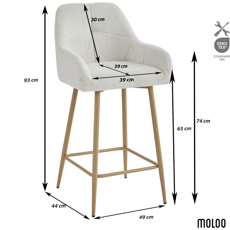 Neu interpretierte skandinavische Linien, bequeme Sitzgelegenheiten ? der Barstuhl LEA ist bereit für lange Momente auf der zentralen Insel. Ideal, mit einer Sitzhöhe von 65 cm bietet er dank seiner hochwertigen Polsterung und seiner umhüllenden Form sehr guten Komfort.Er ist mit dem modernen, strukturierten Ikon-Stoff bezogen, der in mehreren passenden Farben erhältlich ist.