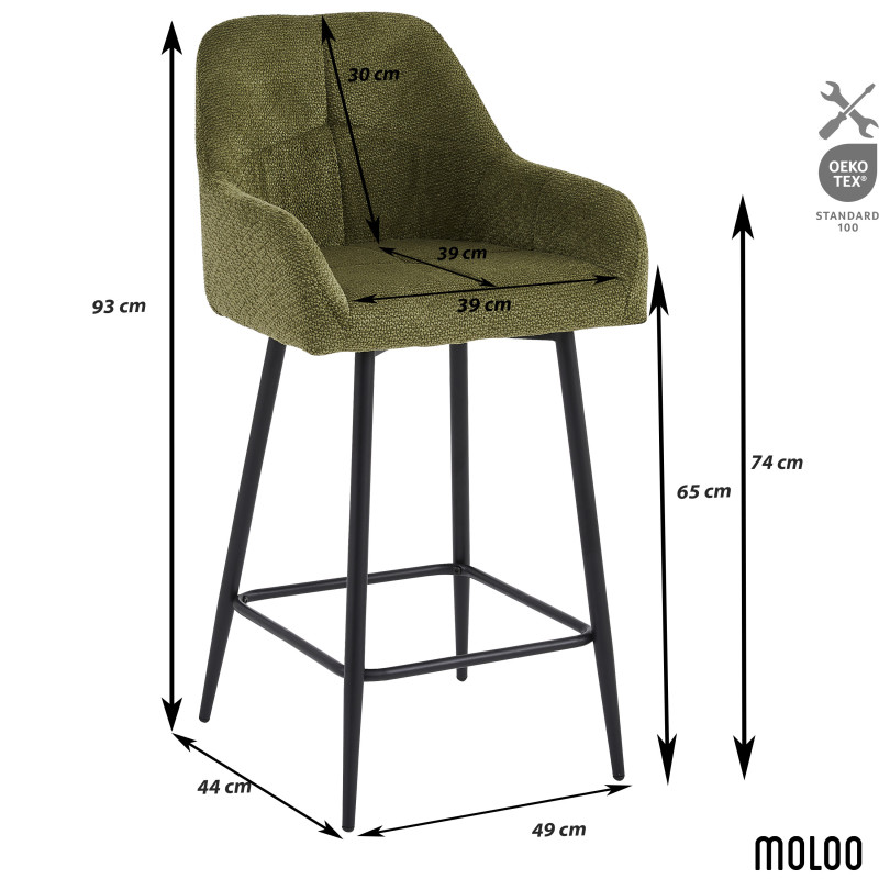 Neu interpretierte skandinavische Linien, bequeme Sitzgelegenheiten ? der Barstuhl LEA ist bereit für lange Momente auf der zentralen Insel. Ideal, mit einer Sitzhöhe von 65 cm bietet er dank seiner hochwertigen Polsterung und seiner umhüllenden Form sehr guten Komfort.Er ist mit dem modernen, strukturierten Ikon-Stoff bezogen, der in mehreren passenden Farben erhältlich ist.