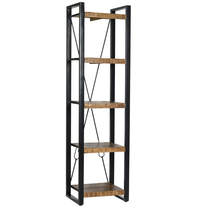 Die robuste und solide Kollektion DACCA besticht durch ihre dicken Holzteile und die schwarzen Stahlleitern der Struktur. Die Details des Mangoholzes werden durch eine wunderschöne Patina hervorgehoben. Die Serie umfasst ein Sideboard, ein hohes Buffet, Bücherregale, Esstische und kleine Wohnzimmermöbel.