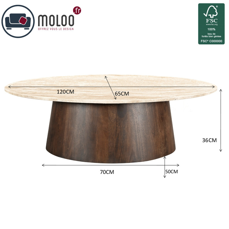 Die STONE-Kollektion präsentiert Travertin, indem sie es mit zertifiziertem massivem braunem Mangoholz kombiniert, um einen sehr modernen Look zu erzielen.