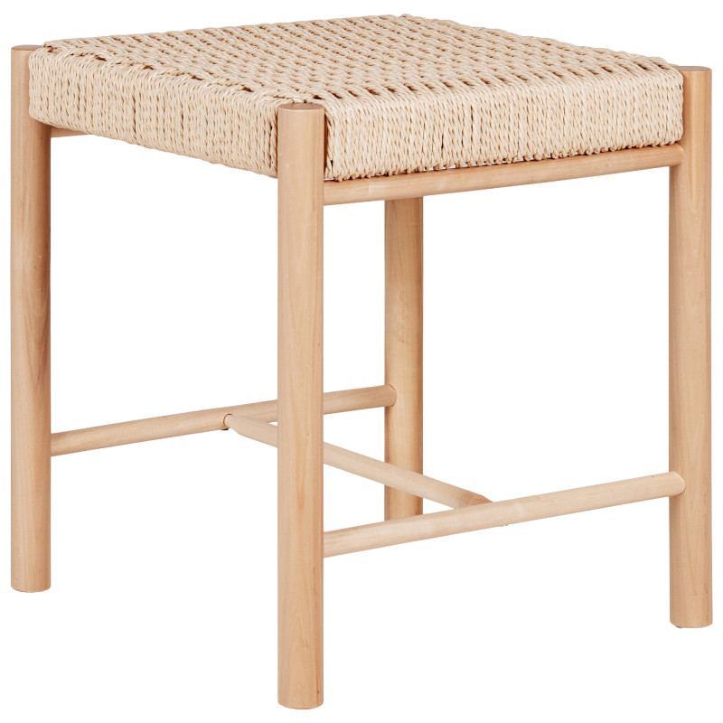 Handwerkskunst neu interpretiert. Dieser Hocker bringt einen Hauch Natur in Ihr Zuhause und vereint Geflecht mit der Robustheit von Pappelholz. Seine kompakte Größe und der warme Stil machen ihn zu einer praktischen und ästhetisch ansprechenden Ergänzung. Die perfekte Kombination aus Material und Design für ein einladendes Ambiente.