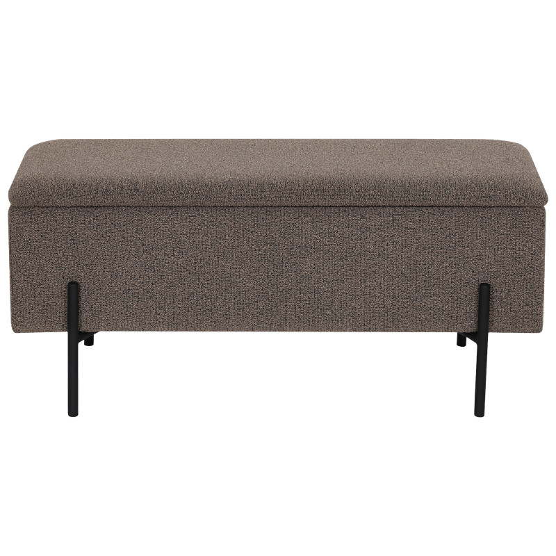 Praktische Gemütlichkeit. Diese braune Bank aus Bouclé-Stoff verleiht jedem Raum einen Hauch von Eleganz und bietet cleveren Stauraum. Dank ihrer weichen Textur wird sie zum Blickfang im Schlafzimmer oder Eingangsbereich. Die perfekte Kombination aus Material und Design für ein einladendes Ambiente.