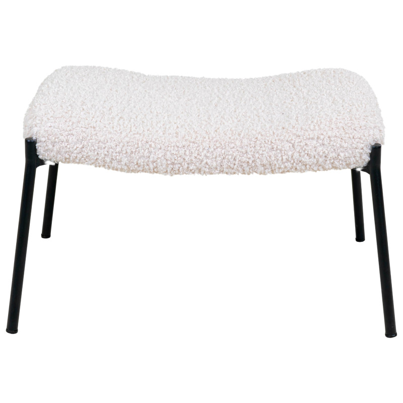 Höchster Komfort. Dieser ecrufarbene Hocker aus ecrufarbenem Bouclé-Stoff ist die perfekte Ergänzung zum Sessel Boris oder ein eleganter zusätzlicher Sitzplatz. Das minimalistische Metallgestell sorgt für optische Leichtigkeit. Die perfekte Kombination aus Material und Design für maximalen Komfort.