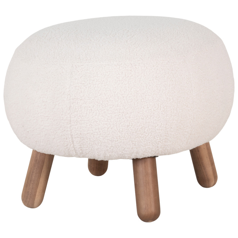 MIMI Kollektion: Bouclé-Hocker Das perfekte, gemütliche Accessoire. Dieser Hocker aus ecrufarbenem Bouclé-Stoff passt ideal zum Sessel Mimi. Seine Holzbeine verleihen ihm eine warme und natürliche Note. Die perfekte Kombination aus Material und Design für maximalen Komfort. Maße: B 47 x T 56 x H 41,5 cm