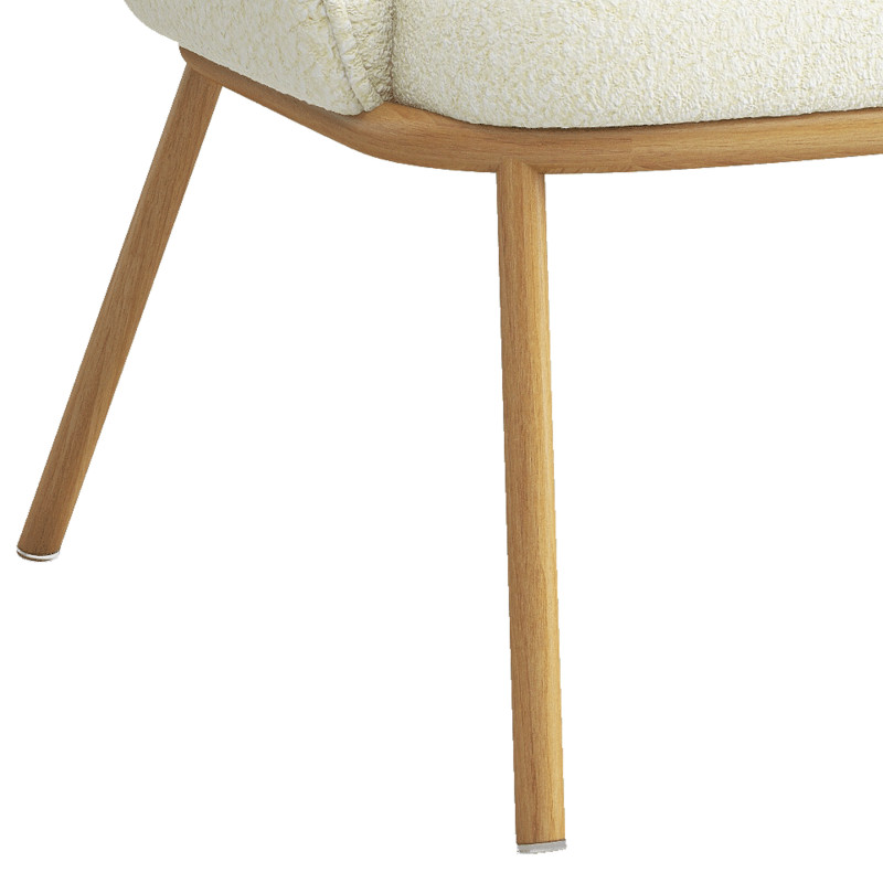 Er ist erstklassig Der Bezug aus Ecru-Loopback-Stoff, Öko-Tex-zertifiziert, verleiht ihm einen leichten Retro-Look mit den Details der Paspelierung, die die Kurven der Rückenlehne hervorheben.