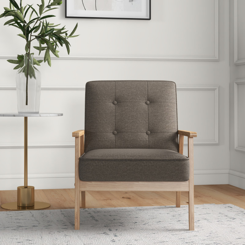 Sein sehr moderner taupefarbener Stoffbezug und seine genähte Rückenlehne unterstreichen seinen schicken und natürlichen Stil.