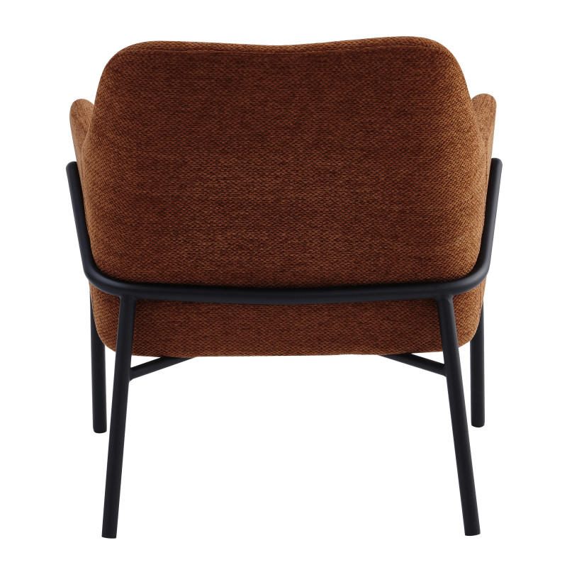 Zeitgenössische Linien und ein Premium-Bezug: Der Sessel LAYTON vereint Komfort und Modernität. Sein Gestell besteht aus schwarzem Metall und seine Sitzfläche ist mit H.R.-Schaum 26 kg/m3 gepolstert. Er wird in einem Terracotta-Luxury-Stoff angeboten, der mit dem Öko-Tex-Siegel ausgezeichnet ist. Schick und bequem.