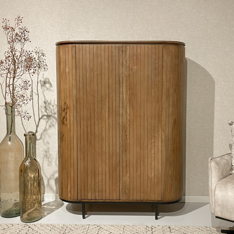 Die Möbel der MENTON-Kollektion sind aus edlem Mangoholz gefertigt und in den Ausführungen Walnuss und Natur erhältlich. Charakteristisch für diese Kollektion sind die elliptische Form und die geschwungenen Seiten, kombiniert mit einem Spiel vertikaler Linien – eine Anspielung auf den Retro-Chic!
