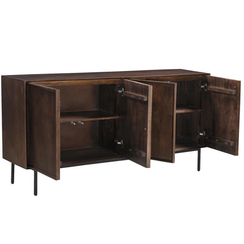 Mit ihrem minimalistischen, puristischen Design und den geometrischen Linien, die durch die gerahmten Türen ohne Griffe betont werden, setzt die Kollektion QUARTO massives Mangoholz in einer schönen dunklen Nussbaum- oder Natur-Oberfläche in Szene.