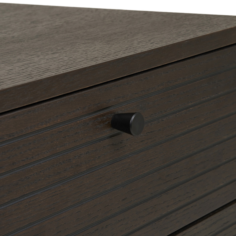 LOGIA Kollektion: Sideboard aus geräucherter Eiche mit Schubladen Funktional und elegant. Dieses Sideboard aus geräucherter Eiche verfügt über dezente Schubladen auf der rechten Seite für übersichtlichen Stauraum. Die Eichenplatte und das Metallgestell vereinen Wärme und Modernität. Die perfekte Kombination aus Material und Linienführung für ein strukturiertes Interieur. Maße: B 150 x T 40 x H 74 cm