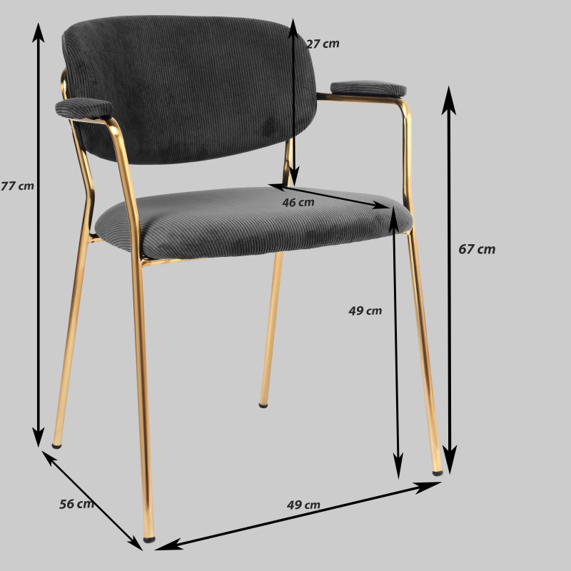 Er verfügt über eine gebogene Einrohrstruktur mit 16 mm Durchmesser und wird zusammengebaut aus sehr schickem goldfarbenem Metall geliefert Mit seiner gebürsteten Oberfläche und einem Bezug aus Carbon-Rippenstoff für den schönsten Effekt.