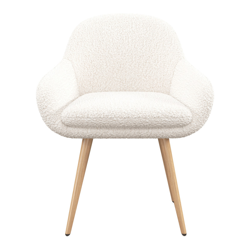 Dieser Stuhl steht sicher auf seinen vier Beinen aus Metall in Holzoptik und verfügt über eine breite Sitzfläche mit einem mit Polyurethanschaum gepolsterten Kissen.