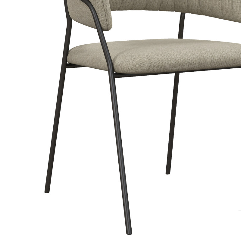 Das Gestell aus schwarzem Stahl bietet eine Sitzhöhe von 45 cm. Er ist mit einem schönen Stoff in trendigen Leinenfarben bezogen und hat eine abgesteppte, gewölbte Rückenlehne, die den Rücken sehr gut stützt und mit einem hochelastischen Schaumstoff gepolstert ist.