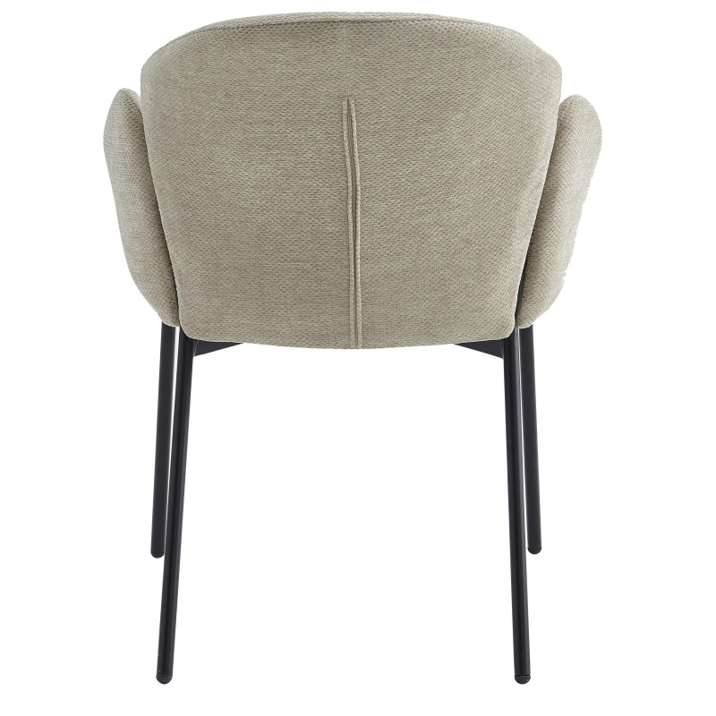 Bewundern Sie die feine Metallstruktur (19 mm), die die Sitzfläche unterstreicht und sich zwischen Armlehnen und Rückenlehne einfügt, mit 4 asymmetrischen Beinen, die nach hinten geneigt sind, um die sehr markante Linie dieses Stuhls zu betonen.