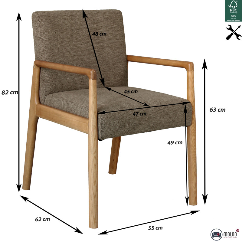 Das Gestell besteht zu 100 % aus FSC-zertifiziertem massivem Eschenholz, das für eine nachhaltige Bewirtschaftung unserer Wälder steht und sich ideal für Möbel eignet, da es Robustheit und Langlebigkeit garantiert.