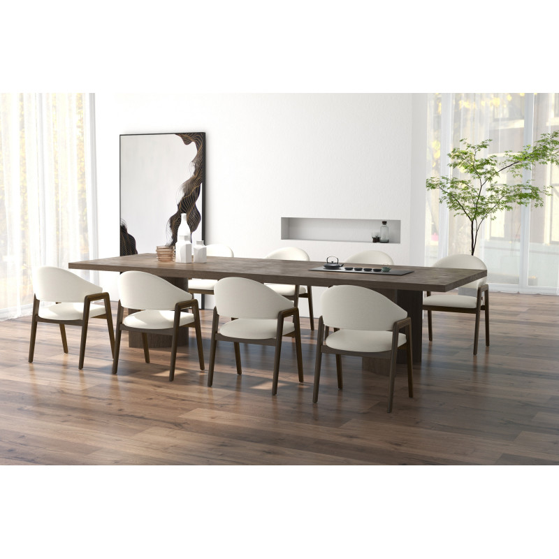 Ausführung in nussbaumfarbener Esche und Stoff Trendy Ecru.