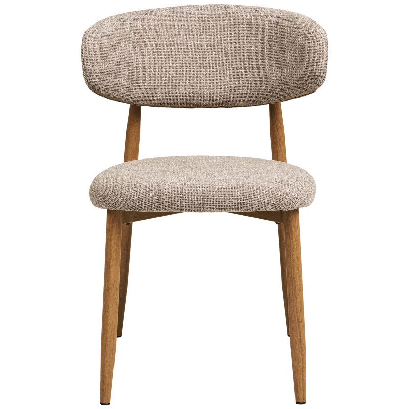 MYA Kollektion: Stuhl mit taupefarbenem Stoffbezug und Eichenholz-Finish Kombinieren Sie nach Lust und Laune. Dieser Stuhl mit taupefarbenem Stoffbezug und Metallgestell in Eichenholz-Optik vereint die Weichheit des Stoffes mit einem Hauch von Holz zu einem modernen skandinavischen Stil. Die perfekte Kombination aus Material und Design für ein elegantes Esserlebnis. Maße: B 55 x T 52 x H 77 cm