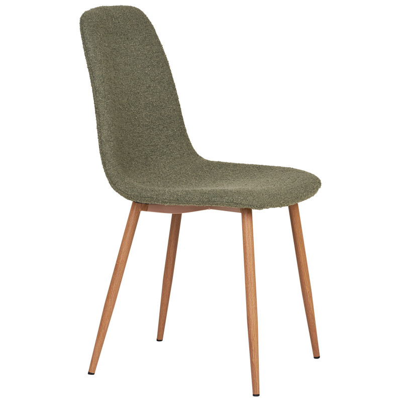 SALYA Kollektion: Stuhl mit dunkelgrünem Chenille-Bezug Textur und Luxus. Dieser Stuhl mit dunkelgrünem Chenille-Bezug bietet ein angenehmes haptisches Erlebnis und eine tiefe Farbe. Das Metallgestell in Eichenoptik unterstreicht seinen eleganten Stil. Die perfekte Kombination aus Material und Design für ein stilvolles Esserlebnis.
