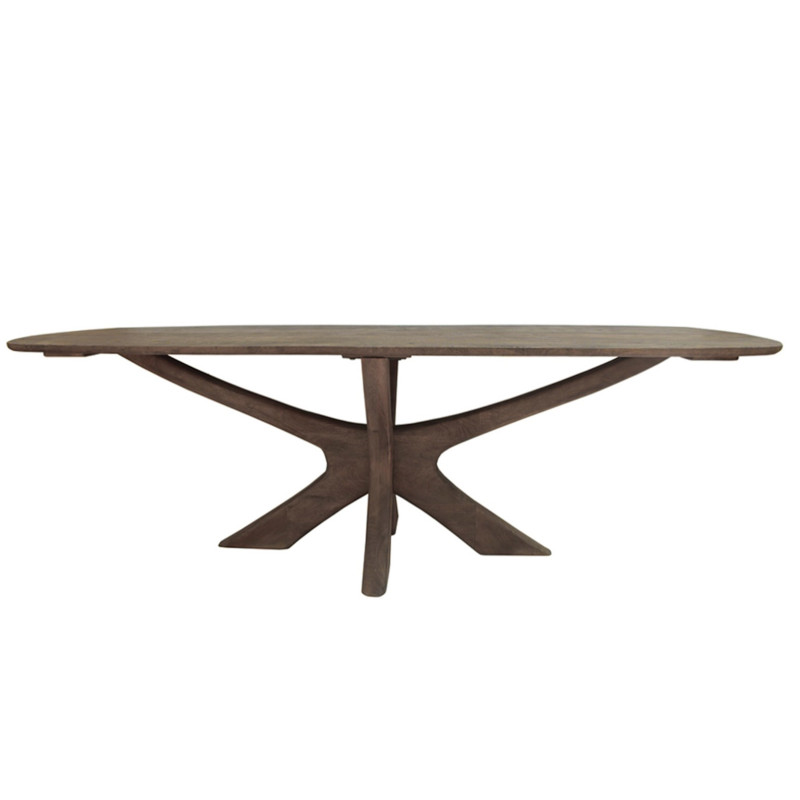 Der Tisch besteht aus gebürstetem FSC-zertifiziertem Mangoholz und ruht auf einem schlanken, markanten Untergestell mit großzügigen Flächen. Die EPSYLON-Kollektion in einem warmen Braunton verleiht Ihrem Zuhause mit ihrer edlen Oberfläche und ihrem natürlichen Charme einen Hauch von Eleganz.