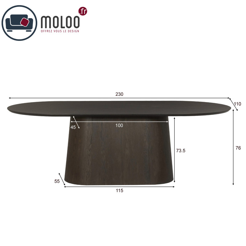Ovaler Esstisch in 230 cm Länge und Eiche Expresso-Ausführung.