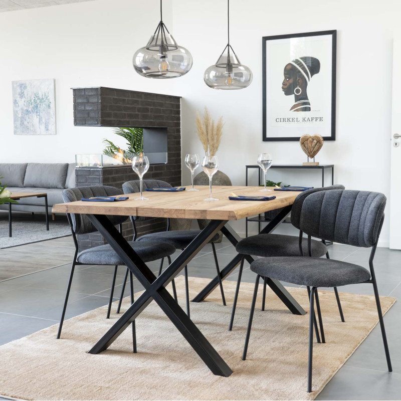 Kompakte Authentizität. Dieser Esstisch aus massiver Eiche ist ideal für Familienmahlzeiten. Seine robuste Tischplatte und das warme Gestell ergänzen den skandinavischen oder rustikalen Chic perfekt. Die gelungene Kombination aus Material und Design schafft eine einladende Atmosphäre. Das naturbelassene Holz verleiht ihm einen Hauch von natürlichem Charme. Zwei Verlängerungsplatten (2 x 50 cm) sind erhältlich.