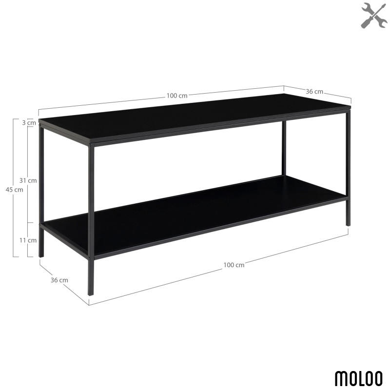 Minimalistisches Design. Dieser TV-Ständer aus schwarzem Metall bietet eine moderne und elegante Lösung für Ihre Geräte. Das offene Design eignet sich perfekt für Receiver und Konsolen. Die ideale Kombination aus Material und Linienführung für ein modernes Wohnzimmer.