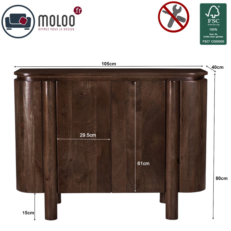 Buffet teñido en marrón, 2 puertas, 105 cm de ancho.