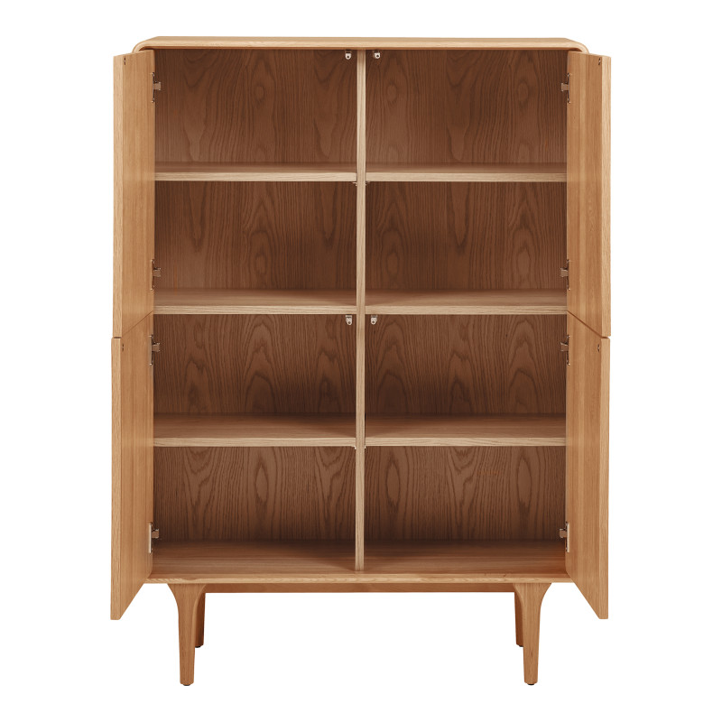 Elegancia vertical. Este aparador alto de roble natural ofrece un amplio espacio de almacenamiento. Su diseño vintage se ve realzado por el mecanismo de apertura sin tiradores. La combinación perfecta de materiales y líneas para un mueble atemporal.