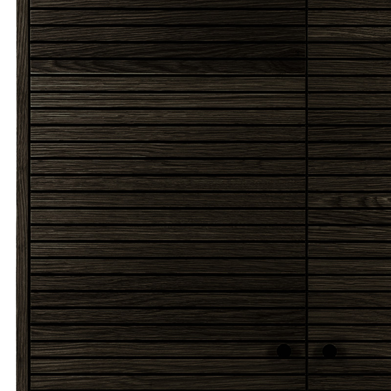 Sofisticación vertical. Este aparador alto de roble ahumado, elaborado en roble y metal, es una pieza que destaca. La madera oscura y las líneas puras le confieren un aire contemporáneo. La combinación perfecta de materiales y diseño para un salón con personalidad.