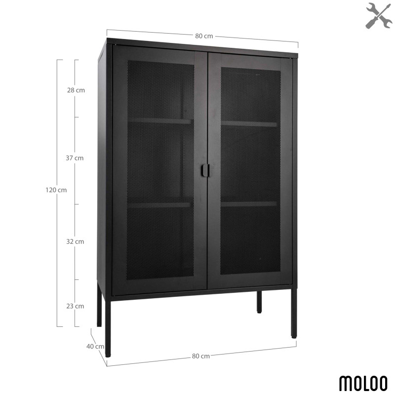 Estilo industrial chic. Este alto mueble de almacenaje de acero negro cuenta con puertas de malla que le dan un aire de taller. Ofrece un amplio espacio de almacenaje cerrado y con estilo. La combinación perfecta de material y diseño para un interior atrevido.