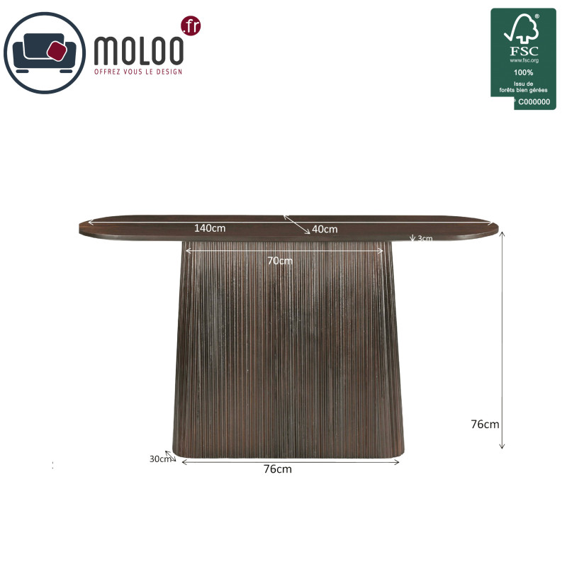 La colección SIENNE incluye mesas de comedor y pequeños muebles auxiliares. Ofrece una línea muy contemporánea combinando tableros ovalados de 3 cm de grosor con patas asimétricas rematadas con múltiples listones verticales ensamblados a mano. La madera maciza de mango certificada está disponible en dos acabados: natural y oscuro.