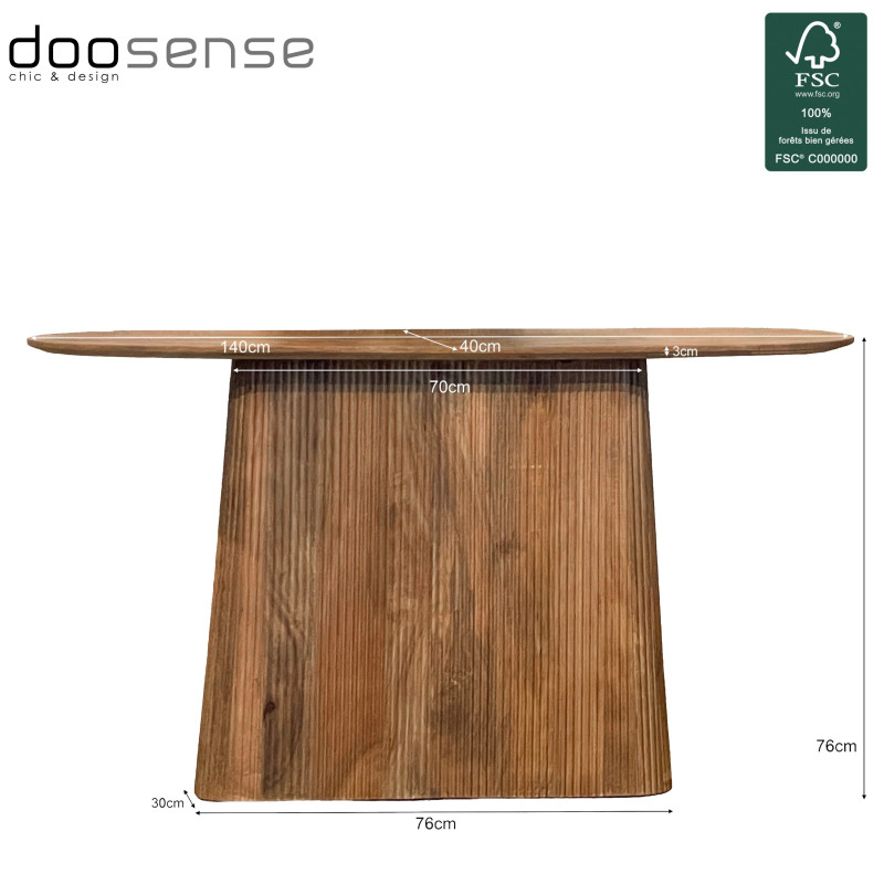 La colección SIENNE incluye mesas de comedor y pequeños muebles auxiliares. Ofrece una línea muy contemporánea combinando tableros ovalados de 3 cm de grosor con patas asimétricas rematadas con múltiples listones verticales ensamblados a mano. La madera maciza de mango certificada está disponible en dos acabados: natural y oscuro.