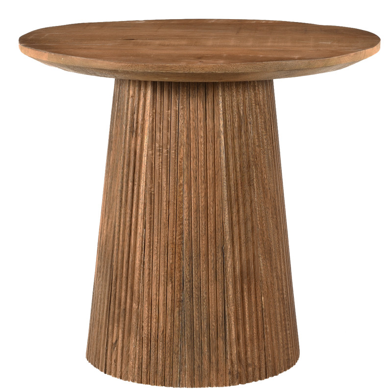 La colección SIENNE incluye mesas de comedor y pequeños muebles auxiliares. Ofrece una línea muy contemporánea combinando tableros ovalados de 3 cm de grosor con patas asimétricas rematadas con múltiples listones verticales ensamblados a mano. La madera maciza de mango certificada está disponible en dos acabados: natural y marrón.