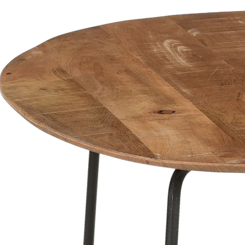 El conjunto de mesa de centro INAYA está fabricado en madera maciza de mango y acero negro.
