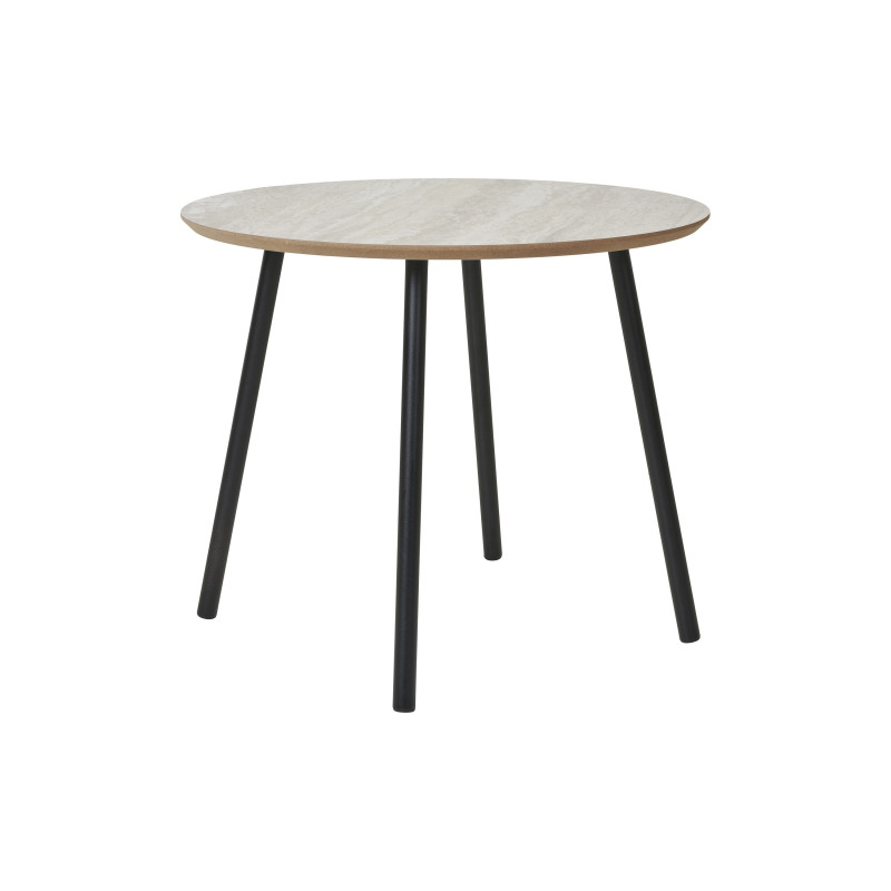 Estética mineral moderna. Esta mesa de centro de travertino, con su elegante estilo industrial, es una pieza que destaca. Su tablero con efecto travertino se apoya en una estructura metálica. La combinación perfecta de material y líneas para un salón moderno y con carácter.