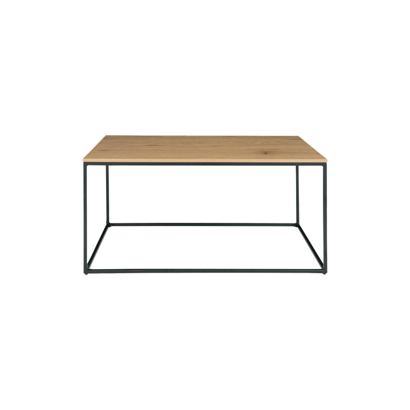 Esta mesa de centro de roble y metal ofrece un amplio espacio para tu sala de estar. La superficie con efecto madera aporta calidez, contrastando con la base de metal negro. La combinación perfecta de materiales y líneas para un estilo industrial escandinavo.