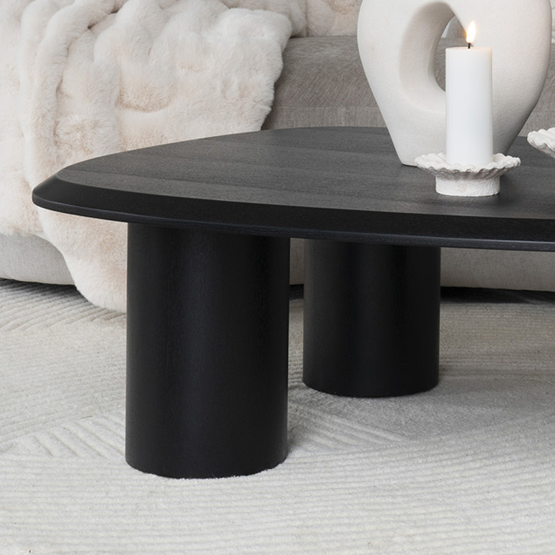 Silueta oscura. Esta mesa de centro asimétrica de fresno negro es una pieza impactante con un diseño minimalista. Su color oscuro y su forma orgánica se integran a la perfección en un estilo contemporáneo. La combinación ideal de material y líneas para un salón con personalidad.