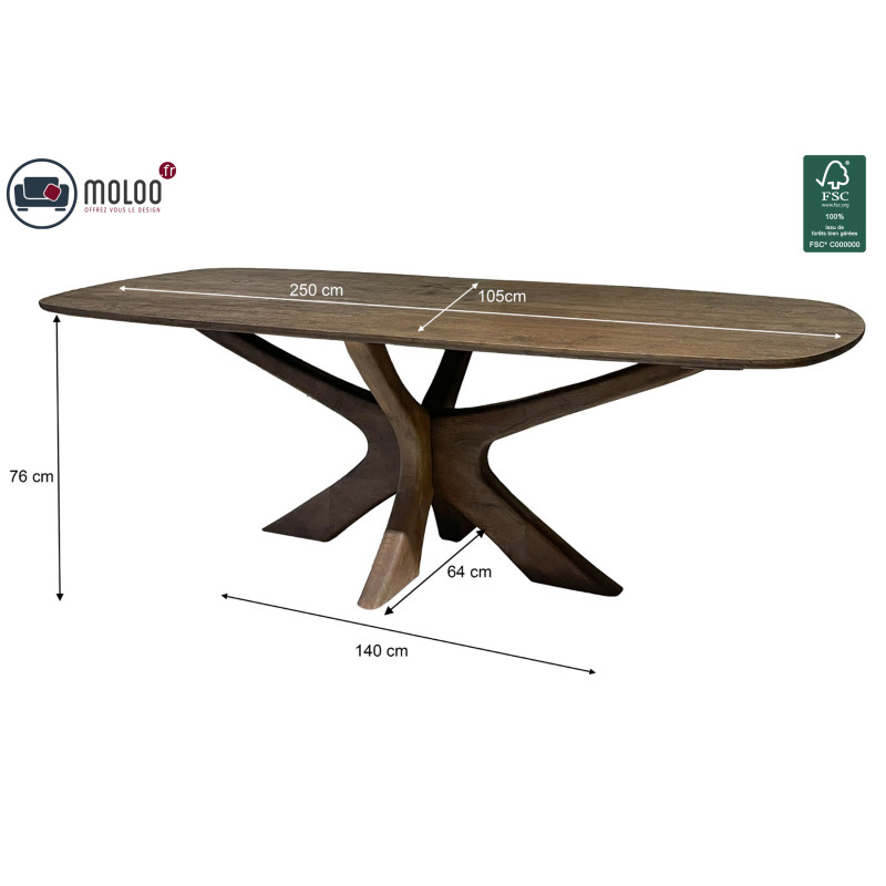 Con sus formas orgánicas y su diseño innovador, las mesas de comedor EPSYLON son sólidas, majestuosas y decididamente contemporáneas. Fabricadas en madera de mango cepillada con certificación FSC, descansan sobre una base elegante y distintiva de secciones generosas. Con un acabado en un cálido tono marrón, la colección EPSYLON aporta un toque de elegancia a su hogar con su acabado refinado y su encanto natural.