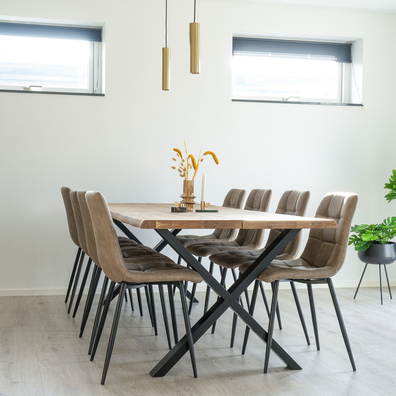 Ideal para reuniones inolvidables. Esta mesa de roble macizo tiene capacidad para hasta 10 personas. Su imponente presencia y la belleza natural de la madera la convierten en la pieza central de su comedor. La combinación perfecta de material y diseño para momentos inolvidables. La madera sin tratar le aporta un toque natural. Opción de añadir un juego de 2 extensiones (2 x 50 cm).