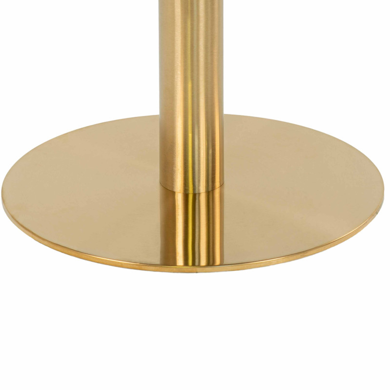 Altura lujosa. Esta mesa de bar es una pieza elegante, con una superficie efecto mármol y una base metálica con acabado en latón. La combinación perfecta de materiales y diseño para un bar sofisticado.