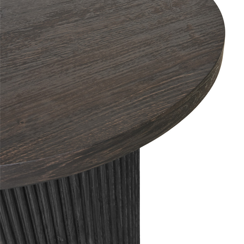 Elegancia circular. Esta mesa redonda marrón oscuro de 120 cm es perfecta para cuatro personas. Su sólida base central le confiere un diseño escultural y moderno. La combinación perfecta de materiales y líneas para una experiencia gastronómica sofisticada.