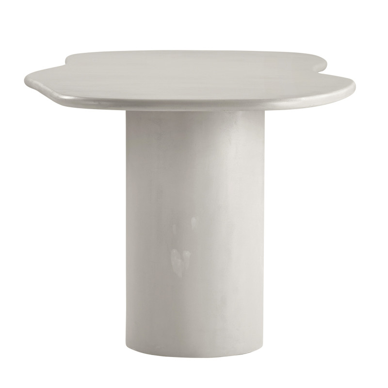 Resistencia Mineral. Esta gran mesa asimétrica de hormigón es una pieza que destaca por su estilo industrial y minimalista. Su superficie con efecto hormigón es robusta y moderna a la vez. La combinación perfecta de material y líneas para un interior contemporáneo.