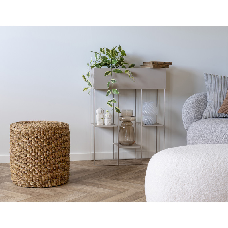 Textura y curvas. Este puf tejido de junco marino natural ofrece una sensación cálida y relajada. Perfecto como asiento auxiliar o reposapiés. La combinación ideal de material y diseño para un estilo bohemio acogedor.