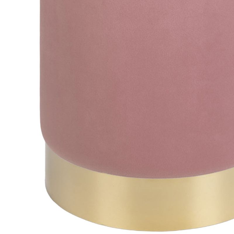Sofisticación y suavidad. Este puf de terciopelo rosa con base de metal en tono latón es ideal para añadir un toque de color moderno. Su rica textura invita a la comodidad. La combinación perfecta de material y diseño para un interior refinado.