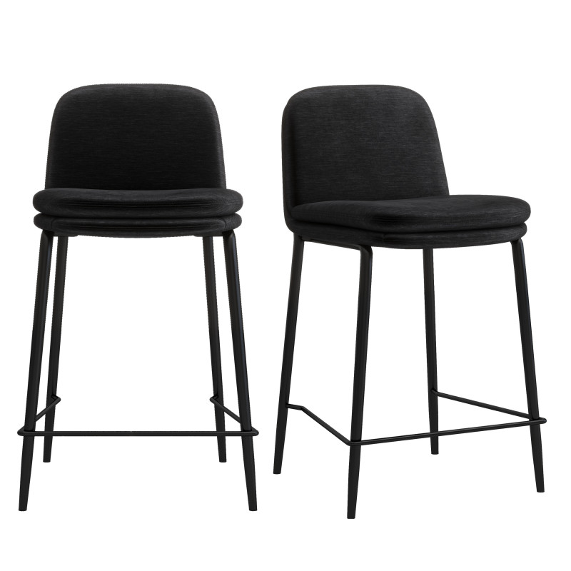 Nos gusta especialmente su base de metal negro de 16 mm con patas cónicas e inserciones de metal dorado cepillado en el respaldo, con su doble acolchado en el asiento y el respaldo y revestido de un tejido de chenilla de primera calidad en color negro con la etiqueta Oeko-Tex.