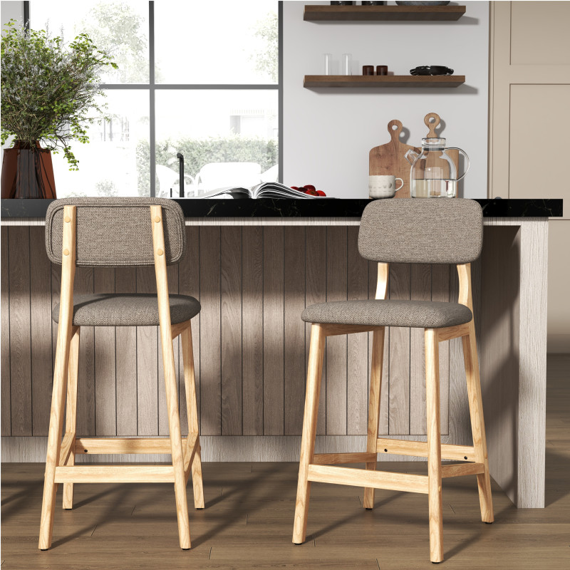 La silla de bar CLIFF de tejido Trendy tiene una altura de asiento de 65 cm, ideal para una isla central de cocina.
