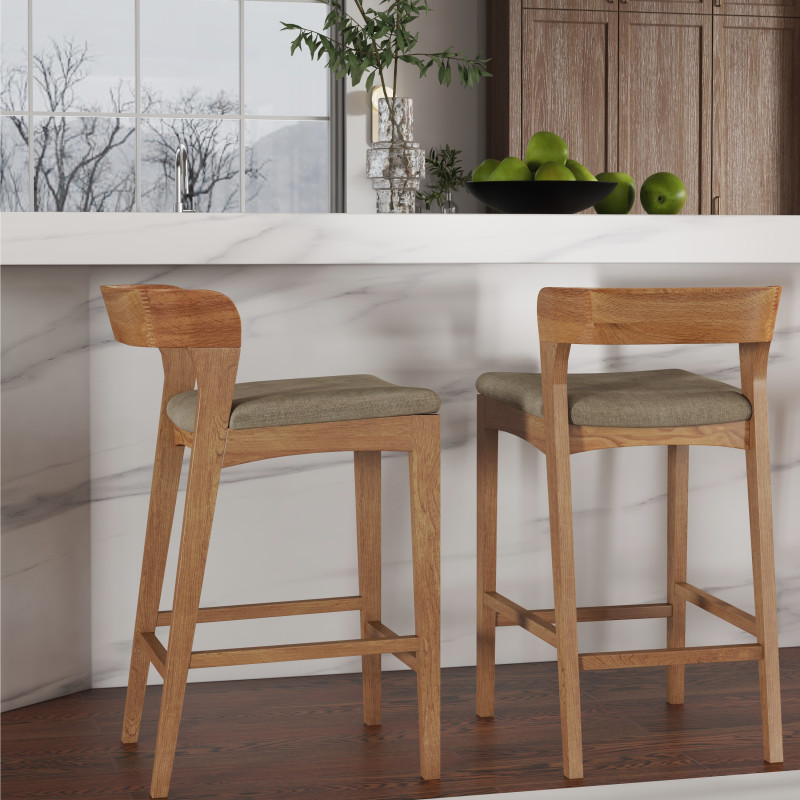 Estructura de roble macizo FSC europeo, acolchado de alta calidad (densidad 28 kg/m3) y altura del asiento de 65 cm.