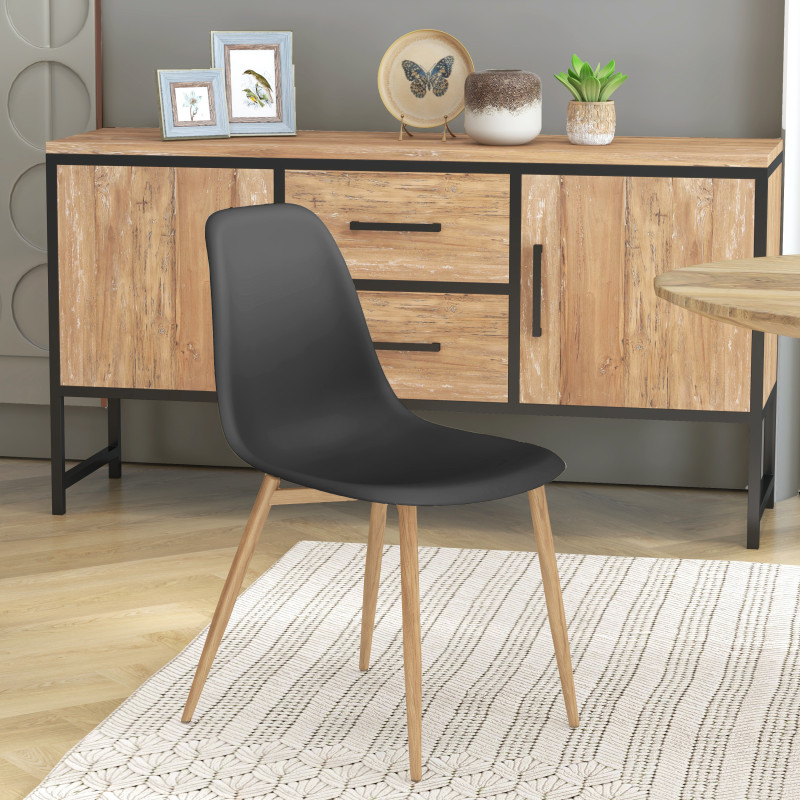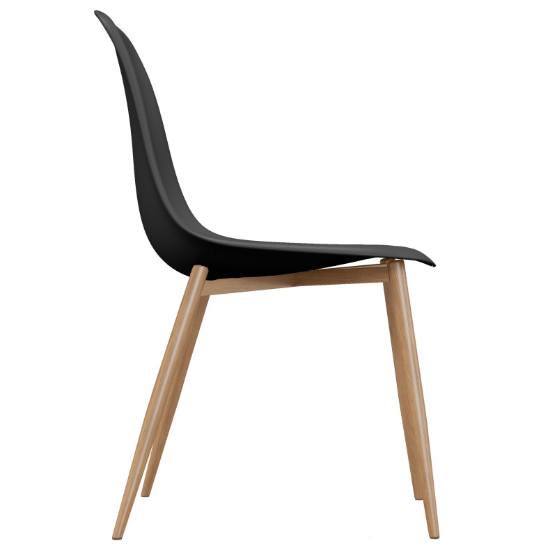 La silla escandinava moderna a un precio razonable. Un estilo eficiente con patas de metal y asiento de polipropileno blanco. Muy fácil de mantener, el polipropileno es un material resistente y se puede limpiar con una simple pasada de esponja. La silla existe en varios colores, la mezcla de colores está de moda y se adapta a muchas mesas e interiores. Versión presentada en juego de 2, Asiento negro y patas de metal roble.